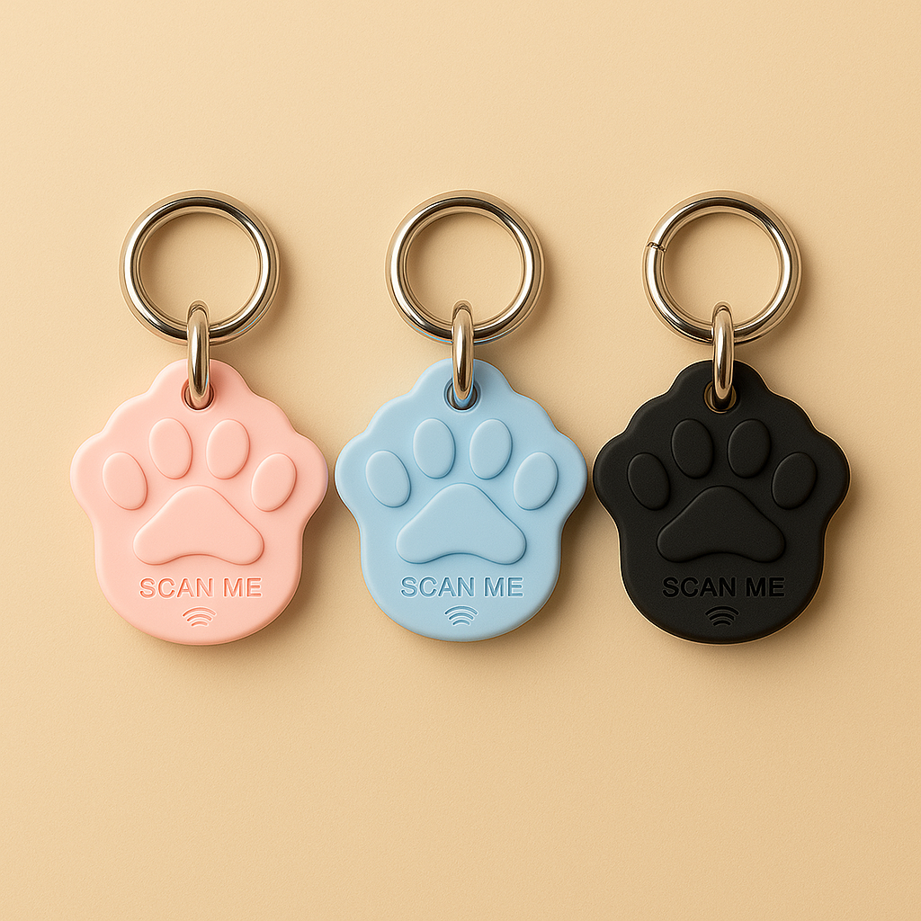 Retrouvez votre compagnon en un scan. Une médaille connectée sous forme de patte qui garde toutes les infos de votre compagnon.