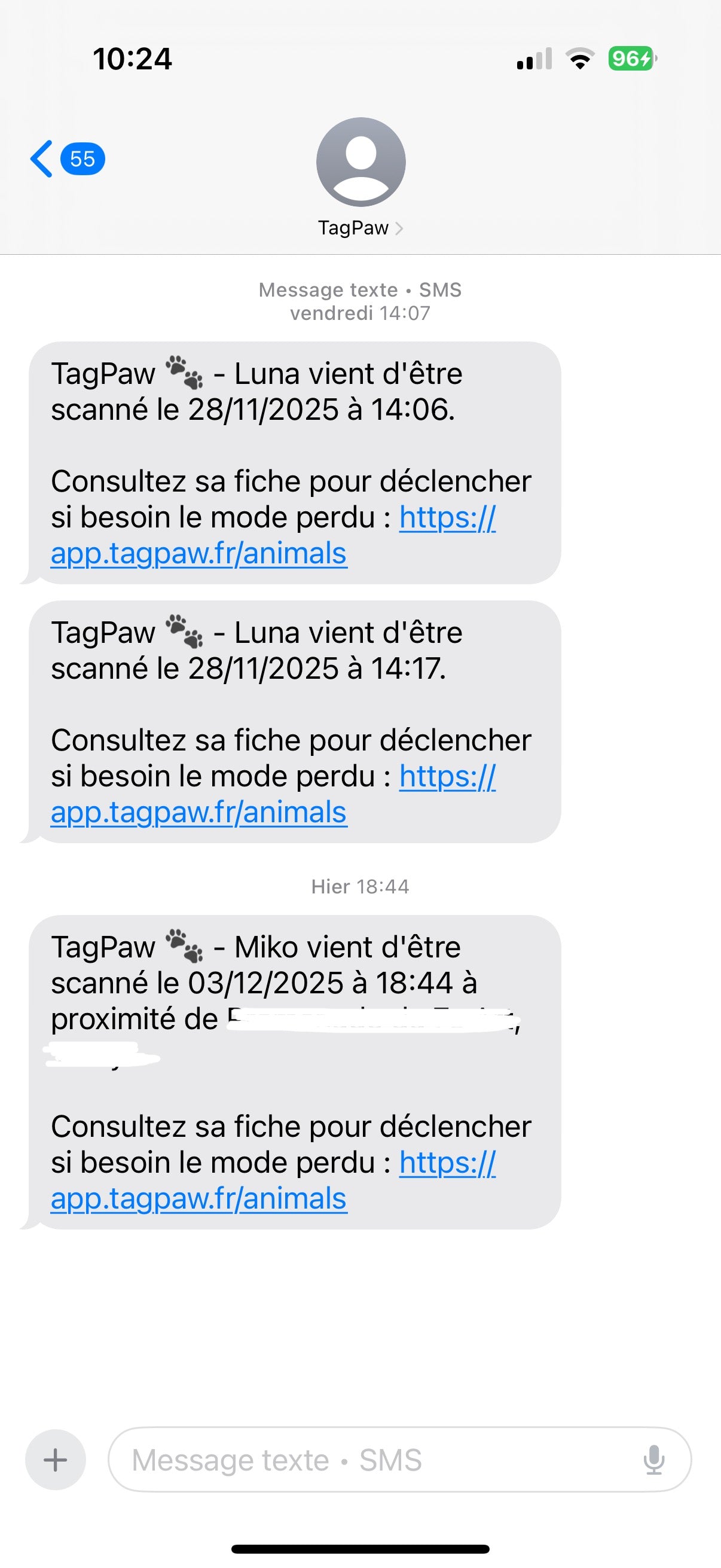 En cas de perte, vous recevez une alerte instantanée par SMS si le médaillon est scanné.